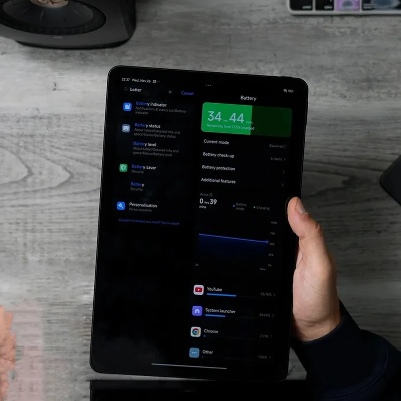 وجود اسپیکرهای استریو تجربه صوتی مناسبی برای تماشای فیلم، بازی و تماسهای آنلاین ارائه میدهد. حجم و شفافیت صدا در سطح خوبی قرار دارد و کیفیت باس نیز مناسب است، هرچند سطح آن به اندازه تبلتهای پرچمدار مانند سری Galaxy Tab S بالا نیست. ترکیب اسپیکرهای استریو با نمایشگر بزرگ Dolby Vision تجربه فیلمدیدن را بسیار لذتبخش میکند. وجود سنسورهای ژیروسکوپ، شتابسنج و قطبنما باعث شده این تبلت در برنامههای واقعیت افزوده، بازیهای حرکتی، مسیریابی داخلی و چرخش هوشمند صفحه عملکردی دقیق داشته باشد. پشتیبانی از قلم نیز برای یادداشتبرداری و طراحی ساده ارزش زیادی دارد. رابط کاربری HyperOS ۲ سرعت بالایی دارد و قابلیتهایی مانند تقسیم صفحه، چندپنجرهای، مدیریت هوشمند رم، پنجره شناور و تنظیمات پیشرفته قلم تجربه کاربری را بسیار بهبود داده است.