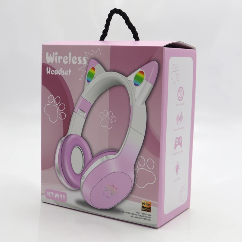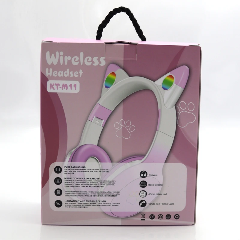 گوش دادن به موسیقی بسیار لذت بخش است. انتخاب و استفاده از یک هدفون خوب می تواند حالتان را در هنگام گوش دادن به موزیک دلخواهتان خوب کند. با توجه به تنوع بالای هدفون ها در بازار ممکن است در انتخاب و خرید سردرگم شوید. توصیه می کنیم این توضیحات را با دقت و تا آخر مطالعه نمایید تا بهترین انتخاب و خرید را داشته باشید. هدفون بلوتوثی مدل YPPK-KT-M11 طراحی بسیار شیک و فانتزی دارد. داخل دسته هدفون سیلیکونی و بالشتک های گوشی ها با اسفنج نرم و چرم پوشانده شده و ساعت ها بدون خستگی می توانید از هدفون استفاده نمایید. این هدفون زیبا دارای دو گوش بر روی دسته ها و با چراغ های ال ای دی رنگی می باشد. همچنین چراغ های طرح قلب نیز روشن می شوند که بسیار زیبا هستند. سایز دسته ها قابل تنظیم می باشند و گوشی ها جهت حمل آسان تر قابلیت تا شدن دارند. کلیدهای کنترلی بر روی گوشی سمت راست تعبیه شده که به شما امکان مدیریت کردن موزیک، خاموش و روشن و مکالمه را می دهد. مزیت های قابل توجه هدفون مدل گربه ای کد YPPK-KT-M11 ورودی AUX جک 3.5 میلیمتری، ورودی کارت حافظه (مموری کارت) و خاموش شدن خودکار در صورت عدم استفاده، اتصال از طریق بلوتوث و طراحی ارگونومیک و بسیار شکیل می باشد.