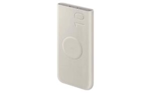 طراحی این مدل مانند سایر کارهای سامسونگ ساده و در عین حال زیبا و کاربردی است. بدنه ساده است و ظاهر سرامیکی مات دارد که جلوه شیکی به آن میدهد، تنها در کنار آن میتوانید عدد ۱۰ را که نشان دهنده ظرفیت باتری است ببینید. وزن پاوربانک حدود ۲۲۰ گرم است که در دسته استانداردی قرار میگیرد و حمل و نقل آن اصلا سخت نخواهد بود. در کنار این موضوع، ابعاد پاوربانک هم استاندارد است و ضخامت حدود ۱.۶ میلیمتری هم به اندازه کافی زیباست. در وجه پایینی پاوربانک میتوانید پورتهای شارژ را ببینید که در کنارشان LEDهای نشانگر برای نشان دادن میزان شارژ باقیمانده قرار گرفتهاند، البته دکمه پاور هم در همین بخش تعبیه شده است که استفاده از پاوربانک را راحتتر میکند. در جعبه دستگاه یک عدد کابل تایپ سی به تایپ سی هم قرار گرفته است و نیازی به خرید کابل اضافه برای استفاده از پاوربانک نخواهید داشت. یکی دیگر از نکات جذاب این پاوربانک، این است که برای ساخت آن از مواد بازیافتی با کیفیت بالا و UL-certified استفاده شده است تا علاوه بر کاربردی بودن یک دستگاه دوستدار محیط زیست هم داشته باشید.